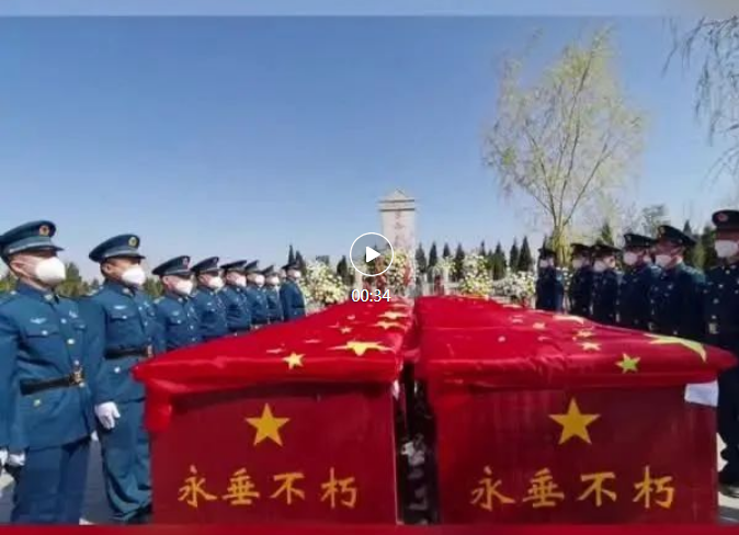 天空云低,蒼柏低垂。一首《思念曲》,帶來陣陣哀思,深沉低回,覆蓋著國旗的16位烈士的棺槨由禮兵緩緩抬入陵園,莊重地擺放在紀念碑前。全體人員手握鮮花莊嚴肅立,祭奠忠魂,向為國捐軀的革命烈士表達深切哀思和無限敬仰之情。禮兵護送烈士靈柩到指定墓位安葬,參加儀式的全體人員向烈士獻花,生長于這片土地的英雄,將在此長眠。