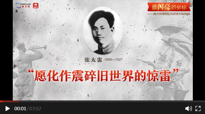編者按:清明憶英烈,忠魂貫長(zhǎng)空。4月1日至5日,南方網(wǎng)、粵學(xué)習(xí)客戶(hù)端策劃推出“最閃亮的坐標(biāo)”系列短視頻,通過(guò)挖掘廣東革命烈士的光輝事跡,與大家一起緬懷英烈、學(xué)習(xí)英烈。今天推出第二篇《張?zhí)祝涸富髡鹚榕f世界的驚雷》。
