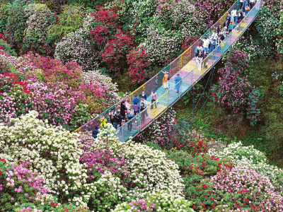 4月4日,游客在貴州省畢節(jié)市百里杜鵑景區(qū)踏青賞花。據(jù)新華社