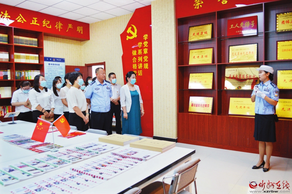 立足崗位,對標(biāo)先進(jìn)。7月1日,市婦聯(lián)黨組組織全體黨員干部前往“山西省巾幗文明崗”“省級青年文明號”等榮譽(yù)稱號獲得單位——定襄縣公安局交警大隊(duì)觀摩學(xué)習(xí)。 本報(bào)通訊員攝
