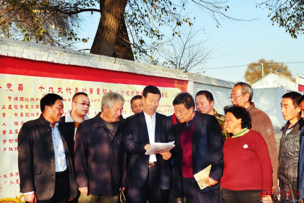 心系百姓,無私奉獻(xiàn)。多年來,全國勞動(dòng)模范、黨的十九大代表、全國脫貧攻堅(jiān)奉獻(xiàn)獎(jiǎng)獲得者沙萬里心里始終裝著百姓,彰顯了共產(chǎn)黨人沖鋒在前、無私奉獻(xiàn)的優(yōu)秀品質(zhì)。圖為他向群眾暢談參加黨的十九大的感受。 喬 偉攝