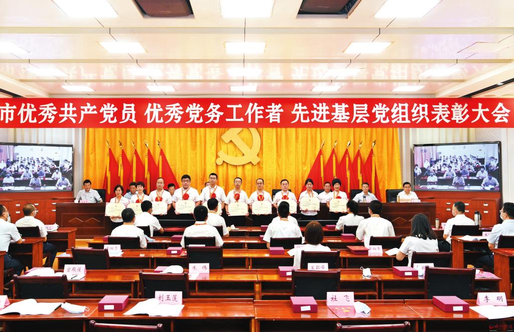 不忘初心,牢記使命,爭先創(chuàng)優(yōu)。在全市“兩優(yōu)一先”表彰大會上,受表彰的全市優(yōu)秀共產(chǎn)黨員上臺領(lǐng)獎(jiǎng)。 劉紀(jì)森攝