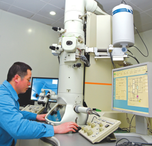 太鋼技術(shù)中心研發(fā)人員在分析鋼材性能。