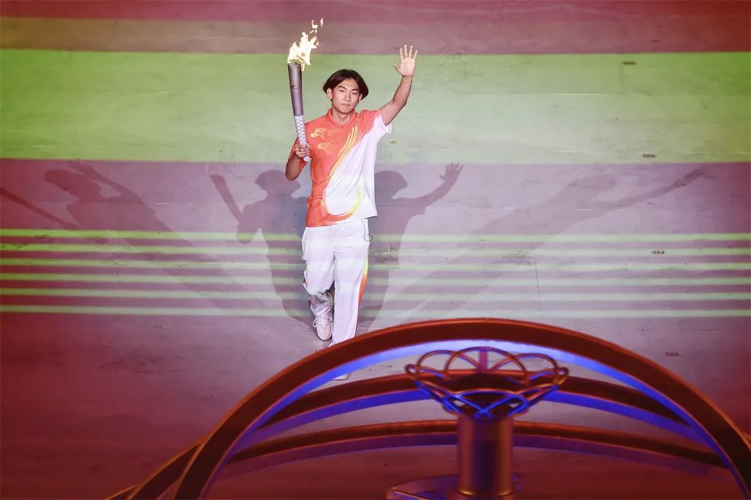 開幕式之夜,最為激動(dòng)人心的就是點(diǎn)火時(shí)刻。在射擊世界冠軍張益梵、鄉(xiāng)村干部王春、環(huán)衛(wèi)工人孫秀蘭、大國(guó)工匠官生花、公交司機(jī)馮冰依次傳遞過后,火炬來到了最后一棒火炬手、北京冬奧會(huì)冠軍蘇翊鳴的手中。主火炬塔點(diǎn)火裝置以山西民俗“旺火”為設(shè)計(jì)依據(jù),采用清潔能源“微火”點(diǎn)燃的方式。蘇翊鳴手持火炬,在萬眾矚目之下,以“微火”點(diǎn)“旺火”,歷史、現(xiàn)在與未來,在這一刻融匯賡續(xù)。