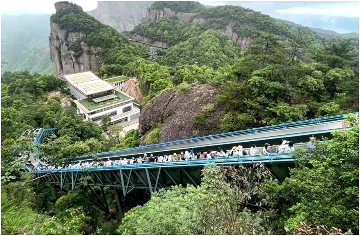5月27日,在浙江省仙居縣神仙居景區(qū),游客絡繹不絕,排隊搭乘纜車和自動扶梯上山觀景。 近年來,仙居縣以環(huán)神仙居大花園“微改造、精提升”為切入口,持續(xù)推進基礎設施、擴容提質等重點領域的完善,以日益豐富的旅游業(yè)態(tài)推進全域旅游示范區(qū)建設,做大美麗經濟。