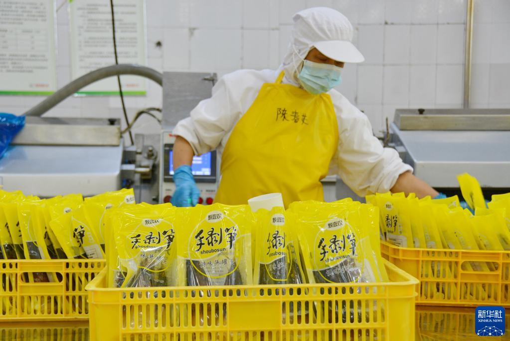 工人在福建省建甌市一家筍竹加工企業(yè)加工手剝筍產(chǎn)品(6月8日攝)。新華社記者 張華迎 攝