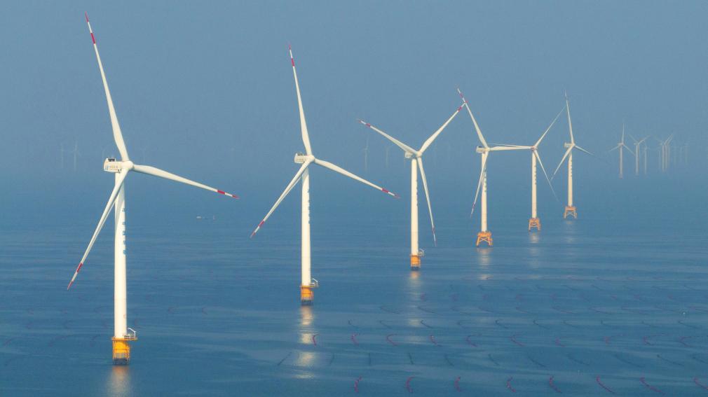 距離大連莊河市海岸線20多公里的黃海海域,300多座高約百米的“大風(fēng)車”聳立在藍(lán)天碧海間,巨大的風(fēng)電機(jī)組葉片不停轉(zhuǎn)動。莊河市發(fā)展和改革局副局長吳靜說:“目前,莊河已有4個海上風(fēng)電項目并網(wǎng)運(yùn)行,年發(fā)電量可達(dá)27.3億度。”