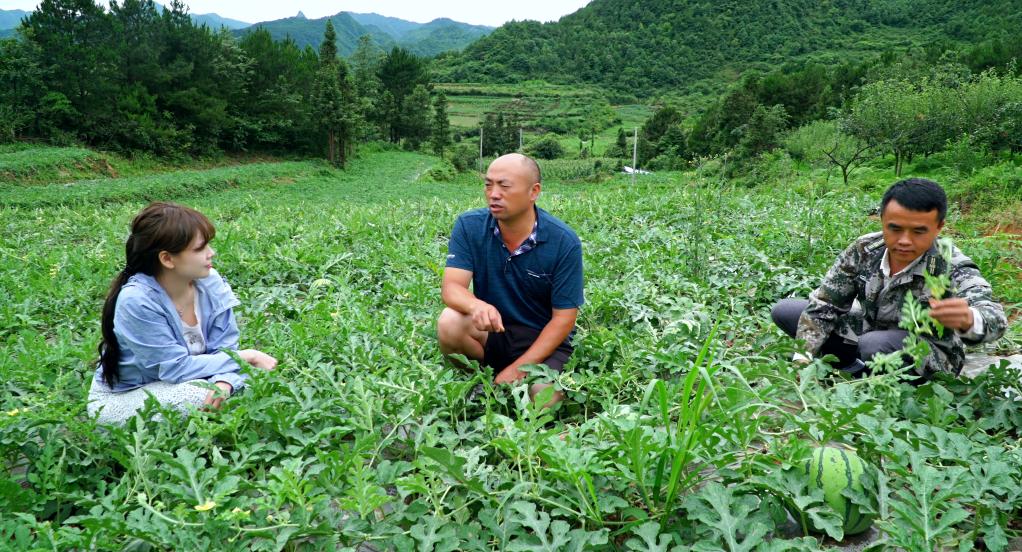 圖為貴陽(yáng)市烏當(dāng)區(qū)新堡鄉(xiāng)新堡村一農(nóng)場(chǎng)負(fù)責(zé)人林正福查看西瓜生長(zhǎng)情況。(韋登亮 攝)