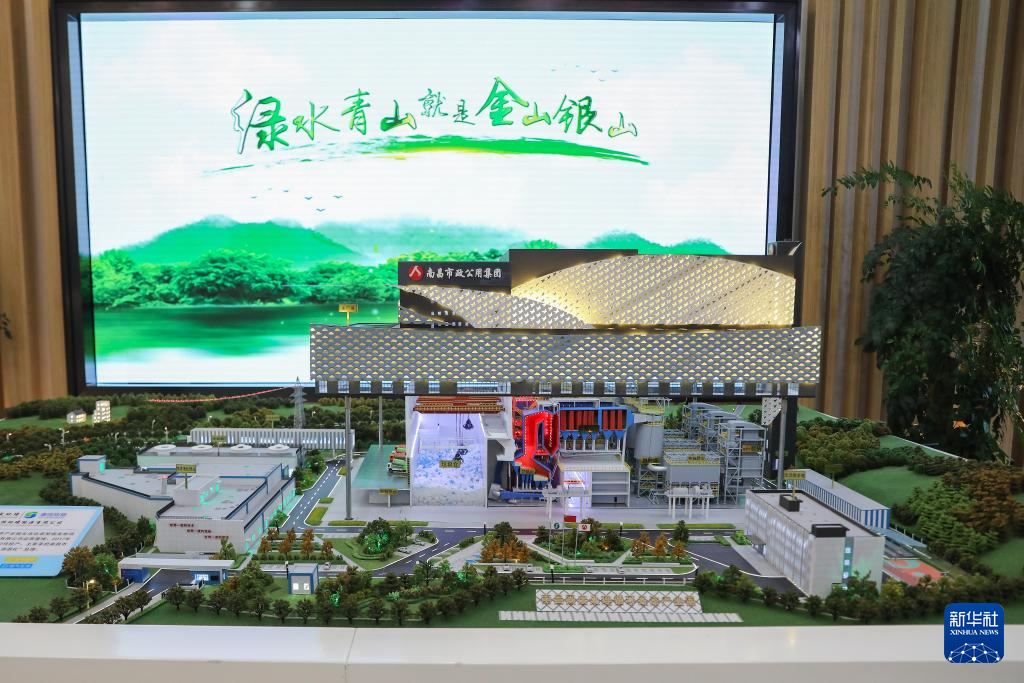6月29日在江西南昌固廢處理循環(huán)經(jīng)濟產(chǎn)業(yè)園拍攝的介紹生活垃圾焚燒發(fā)電項目的模型。新華社記者 杜瀟逸 攝