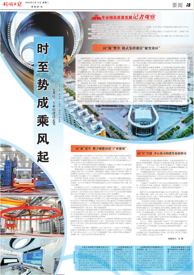 一系列成果已經(jīng)顯現(xiàn)?!抖ㄏ宸ㄌm專業(yè)鎮(zhèn)實(shí)施方案》《定襄法蘭專業(yè)鎮(zhèn)三年行動計(jì)劃》《定襄縣鍛造產(chǎn)業(yè)數(shù)字化、智能化發(fā)展的實(shí)施方案》等系列規(guī)劃和政策性文件先后出臺;專業(yè)鎮(zhèn)重大項(xiàng)目清單、招商引資清單完整出爐;產(chǎn)業(yè)擴(kuò)規(guī)提質(zhì)、數(shù)字化賦能、創(chuàng)新能力提升、平臺建設(shè)、資本助力、穩(wěn)外貿(mào)拓市場、要素集聚、人才培育、優(yōu)化環(huán)境、宣傳推介等十大行動握指成拳、合力攻堅(jiān);三大平臺、五個中心雛形初現(xiàn)。