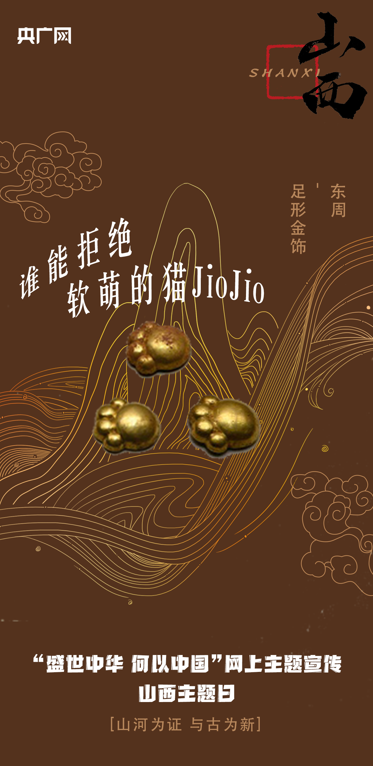 東周足形金飾。這組“貓爪”金飾文物出土于山西運城垣曲北白鵝墓地,距今已有2700多年的歷史,一共五件,或為佩戴在腰間的飾物。該金飾大小和小拇指指甲蓋相當,四個“腳趾”和一個“肉墊”的造型簡直就是貓爪復刻。