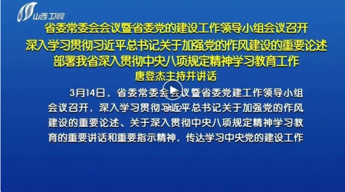 山西日報報道 3月14日,省委常委會會議暨省委黨建工作領(lǐng)導(dǎo)小組會議召開,深入學(xué)習(xí)貫徹習(xí)近平總書記關(guān)于加強黨的作風(fēng)建設(shè)的重要論述、關(guān)于深入貫徹中央八項規(guī)定精神學(xué)習(xí)教育的重要講話和重要指示精神,傳達(dá)學(xué)習(xí)中央黨的建設(shè)工作領(lǐng)導(dǎo)小組會議精神,按照《關(guān)于在全黨開展深入貫徹中央八項規(guī)定精神學(xué)習(xí)教育的通知》要求,對全省開展學(xué)習(xí)教育進(jìn)行安排部署,審議通過《關(guān)于在全省開展深入貫徹中央八項規(guī)定精神學(xué)習(xí)教育的實施方案》。省委書記、省委黨的建設(shè)工作領(lǐng)導(dǎo)小組組長唐登杰主持會議并講話。