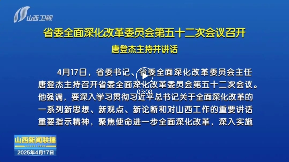 4月17日,省委書記、省委全面深化改革委員會(huì)主任唐登杰主持召開省委全面深化改革委員會(huì)第五十二次會(huì)議。他強(qiáng)調(diào),要深入學(xué)習(xí)貫徹習(xí)近平總書記關(guān)于全面深化改革的一系列新思想、新觀點(diǎn)、新論斷和對(duì)山西工作的重要講話重要指示精神,聚焦使命進(jìn)一步全面深化改革,深入實(shí)施改革攻堅(jiān)行動(dòng),突出抓落實(shí)的鮮明導(dǎo)向,凝心聚力、實(shí)干篤行,不折不扣推進(jìn)黨中央決策部署及省委工作安排落地見效,為中國(guó)式現(xiàn)代化山西實(shí)踐提供強(qiáng)勁動(dòng)力。