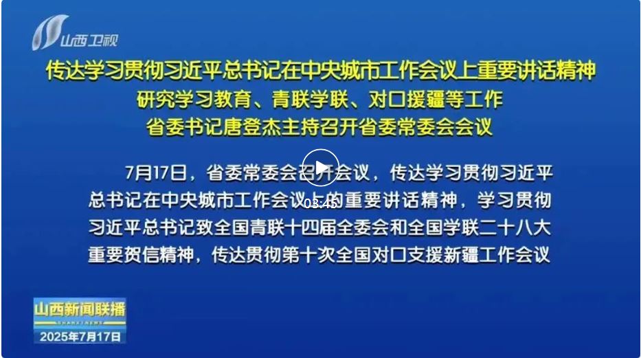 會(huì)議指出,要認(rèn)真落實(shí)第十次全國對(duì)口支援新疆工作會(huì)議精神,扛牢政治責(zé)任,完善工作機(jī)制,科學(xué)編制“十五五”援疆規(guī)劃,扎實(shí)推進(jìn)產(chǎn)業(yè)援疆、教育援疆、醫(yī)療援疆、文化潤疆和民族交往交流交融等重點(diǎn)任務(wù),為服務(wù)新疆社會(huì)穩(wěn)定和長治久安作出山西貢獻(xiàn)。