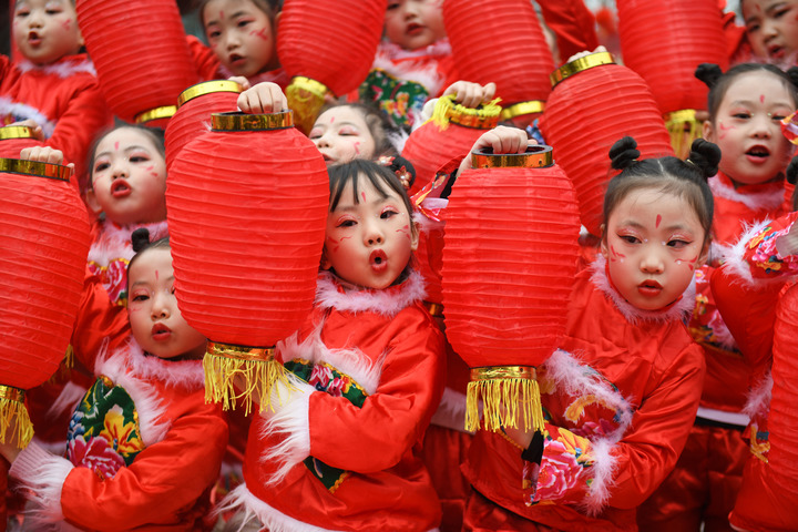 1月18日,四川省閬中市閬中古城,民間藝人和文藝工作者在表演節(jié)目歡度臘八節(jié),喜迎農(nóng)歷新年。這是參演的小朋友在表演。新華社發(fā)(王玉貴 攝)