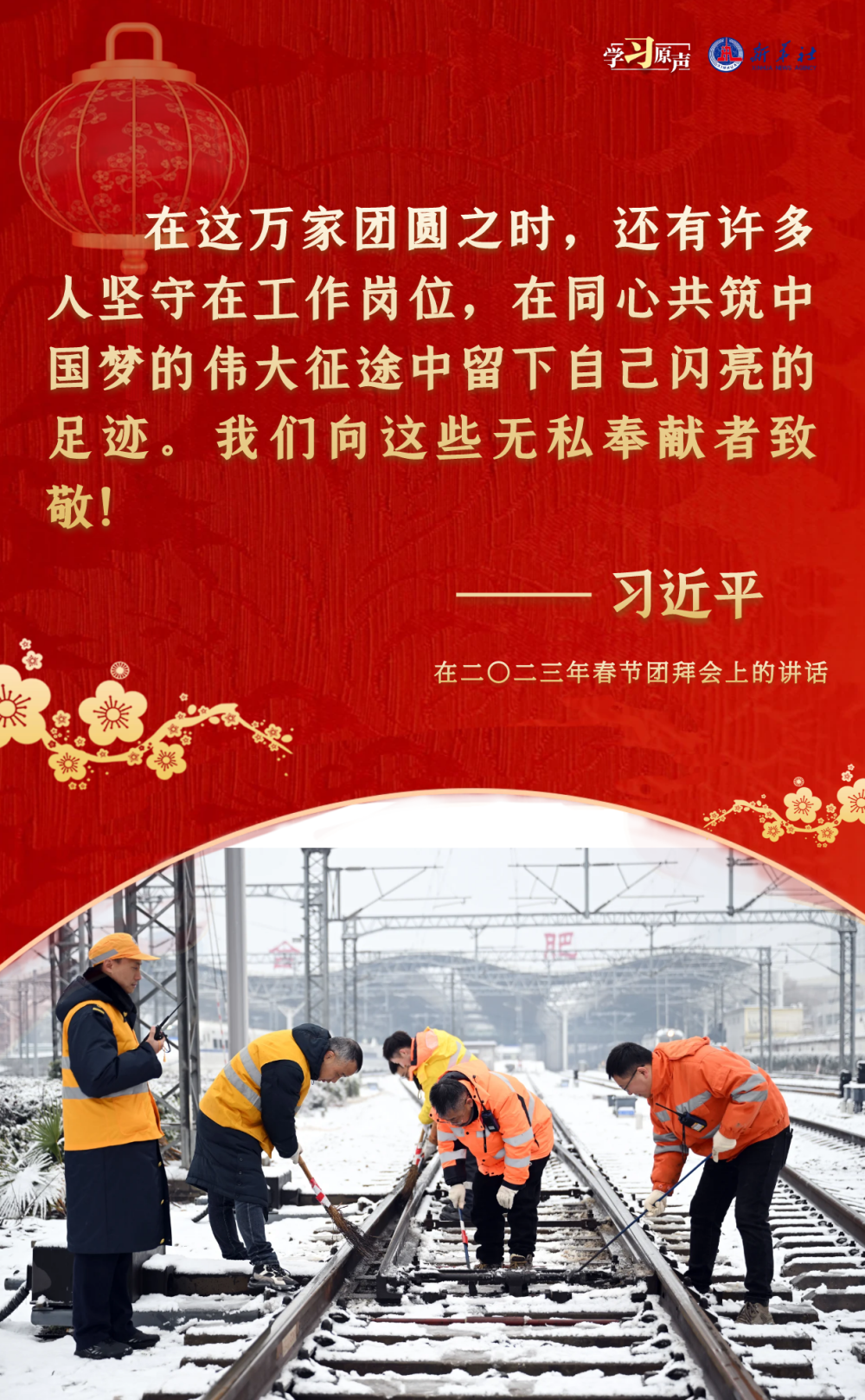 農(nóng)歷新年前夕,習(xí)近平總書記在春節(jié)團(tuán)拜會(huì)上發(fā)表熱情洋溢的講話,辭舊歲、賀新春,送祝福、道真情??倳洔嘏辛Φ脑捳Z鼓舞人心,催人奮進(jìn),凝聚奮進(jìn)新征程的磅礴力量。