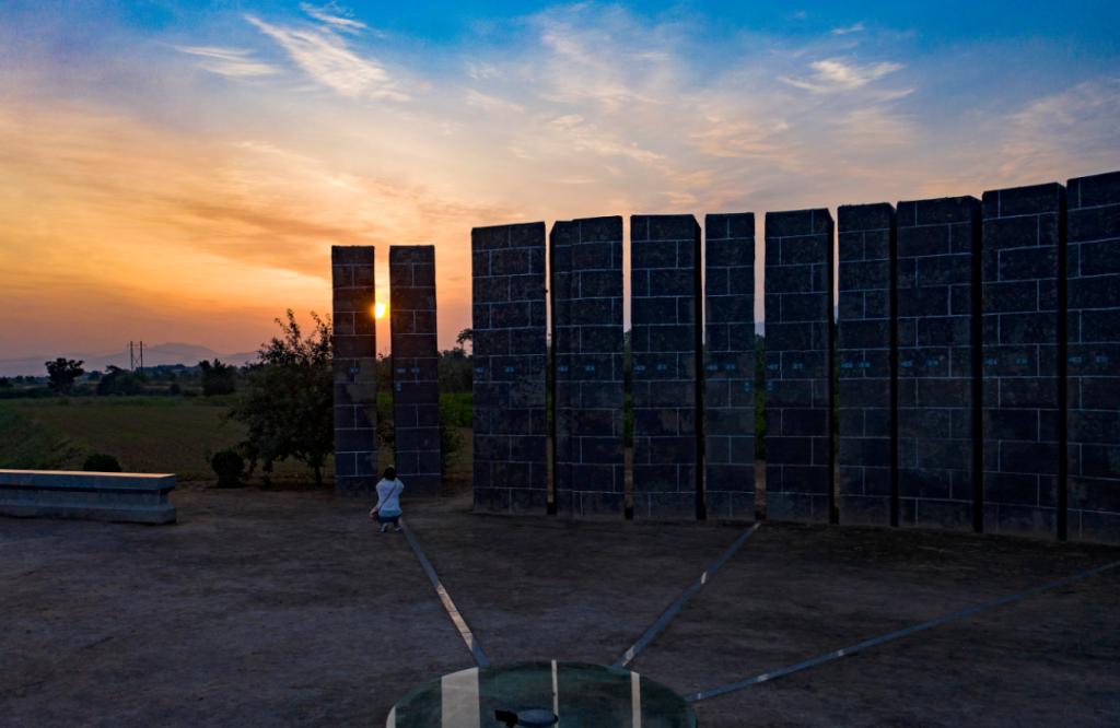 ▲2023年6月21日,人們在臨汾市襄汾縣陶寺遺址觀象臺觀看日出天文景象。當(dāng)日是二十四節(jié)氣“夏至”,在山西省臨汾市襄汾縣陶寺遺址觀象臺,人們近距離體驗“太陽-觀測縫-觀測點”之間形成的三點一線天象奇觀,了解古代確定季節(jié)、節(jié)氣,安排農(nóng)耕的天文歷法。陶寺古觀象臺距今約4700年,是陶寺遺址考古中的重大發(fā)現(xiàn)。李現(xiàn)俊攝