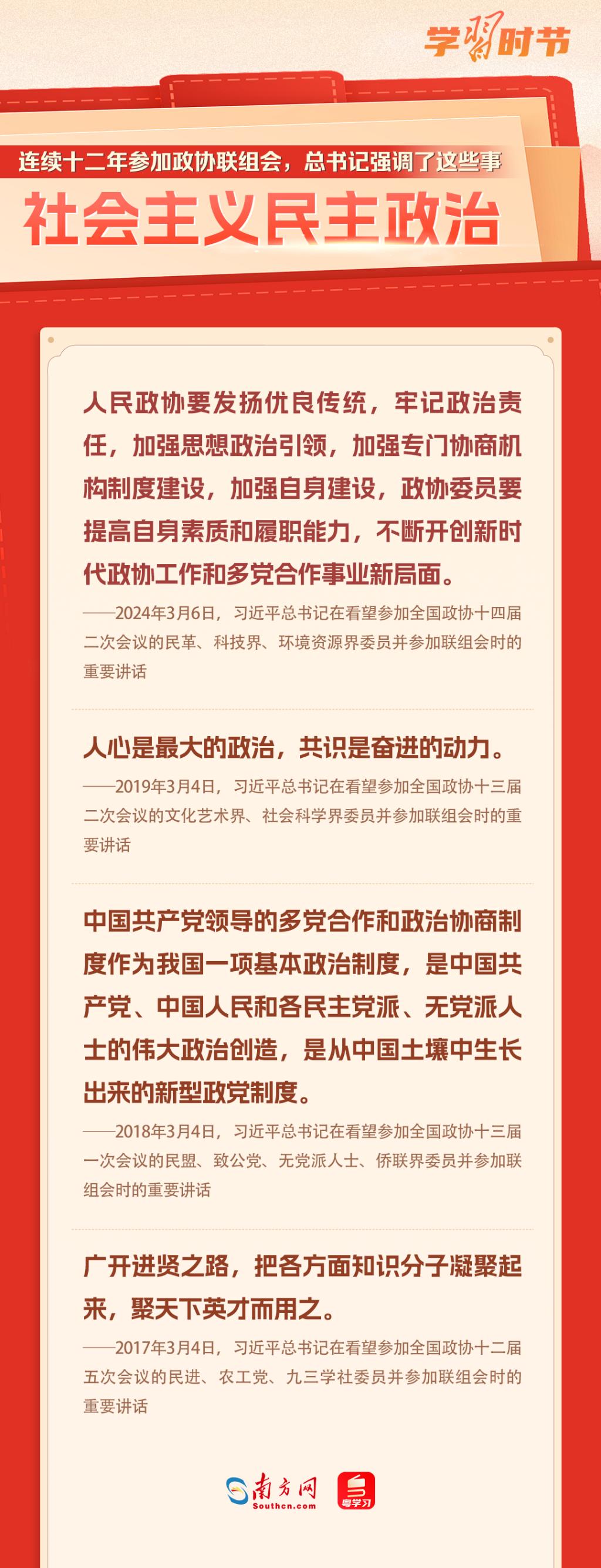 中國共產(chǎn)黨領(lǐng)導(dǎo)的多黨合作和政治協(xié)商制度是我國的一項基本政治制度。黨的十八大以來,習(xí)近平總書記每年都參加政協(xié)聯(lián)組會,對社會主義民主政治、民營經(jīng)濟、自主創(chuàng)新、鄉(xiāng)村振興、社會保障、文化自信、國家統(tǒng)一等作出重要論述,讓我們一起重溫金句!
