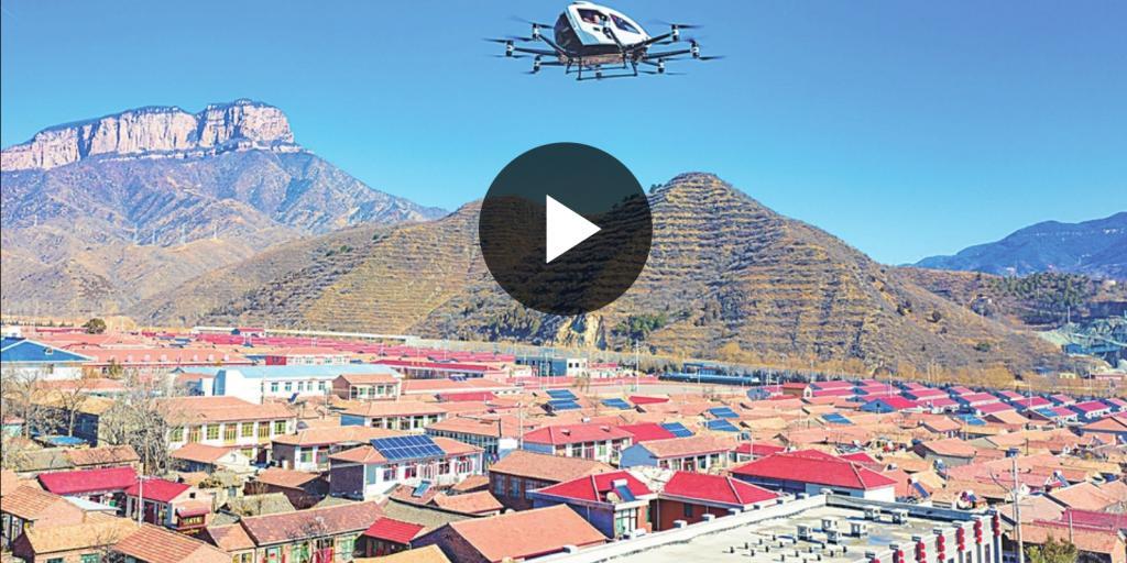 ▲春節(jié)期間,“空中的士”在晉中左權(quán)飛行展示