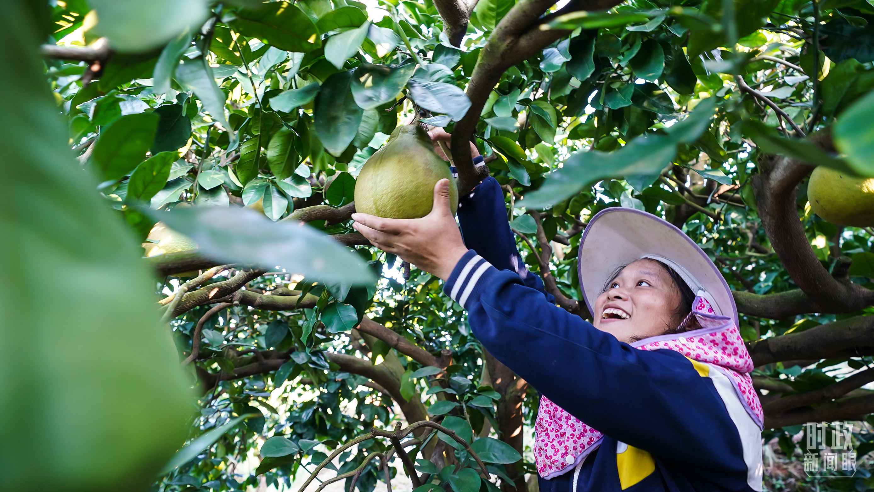 △南福村黃澄澄的柚子掛滿枝頭。(總臺(tái)央視記者鄂介甫拍攝)